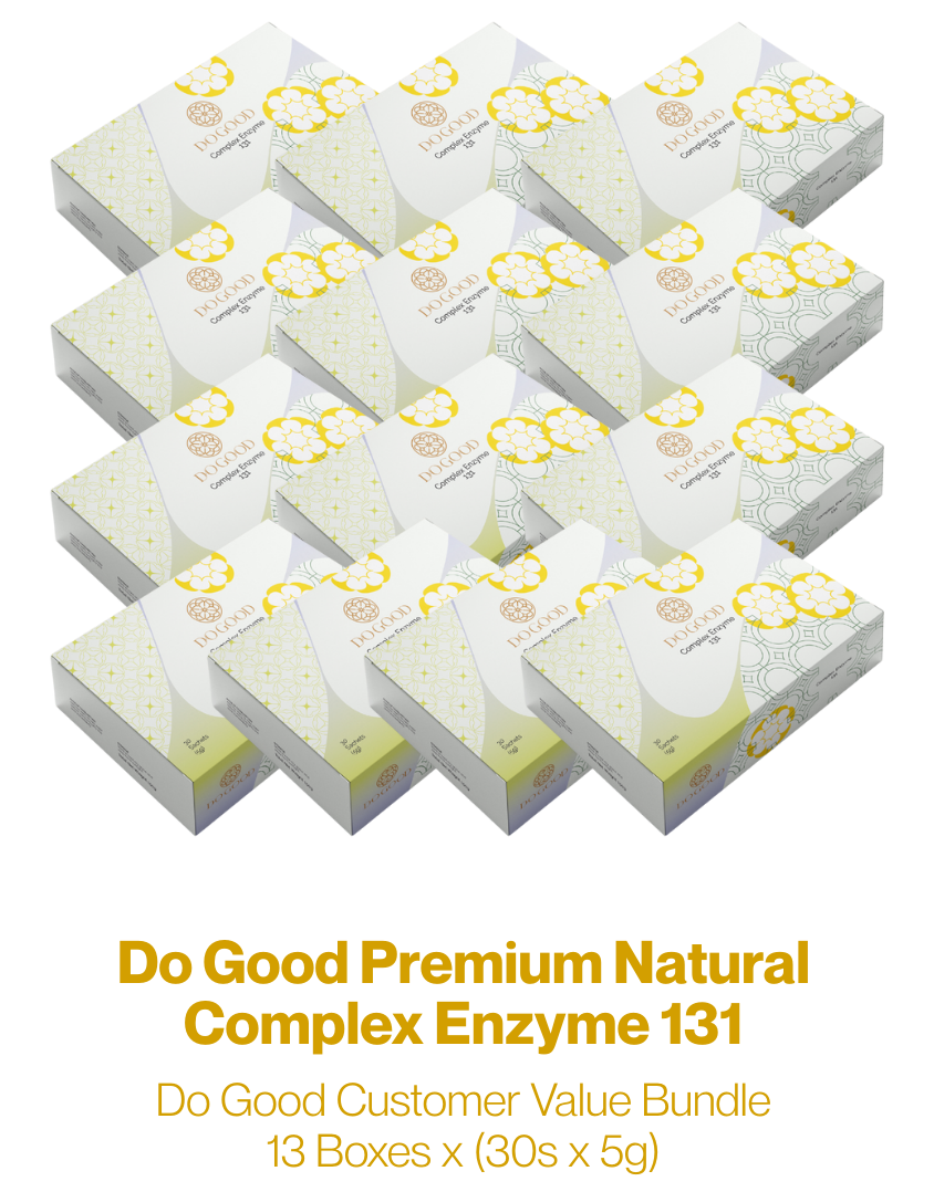 The Do Good Repeat Purchase Package features a Buy 12 Get 1 Free offer, consisting of 13 boxes of Do Good Premium Natural Complex Enzyme 131, with each box containing 30 single-serve sachets (5g per sachet). This package not only supports daily, long-term enzyme supplementation, but also helps agents maintain steady stock for customer repurchases, sampling, and community sharing—allowing health benefits and business growth to progress hand in hand.